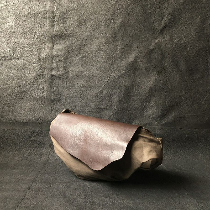 贅沢に使用した革蓋が特徴のボディバッグ。