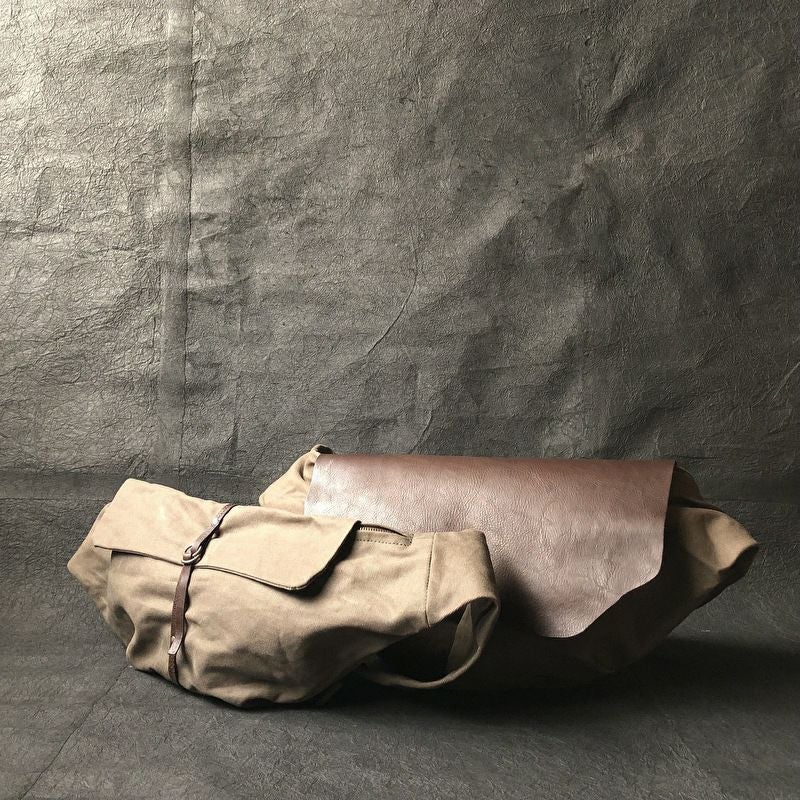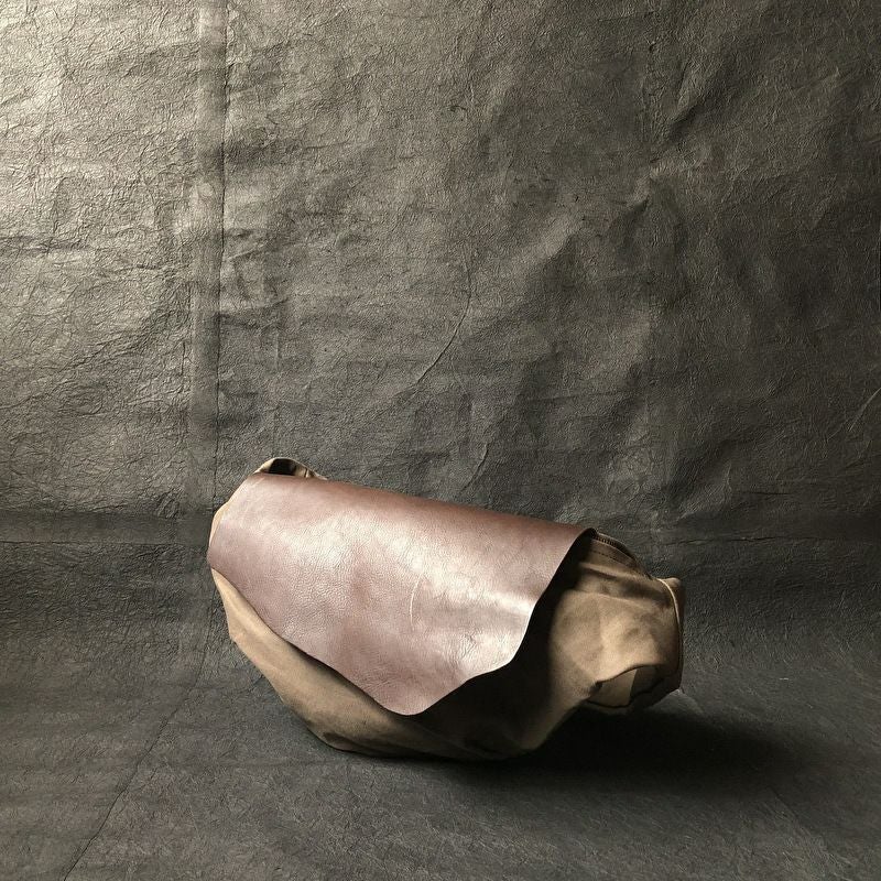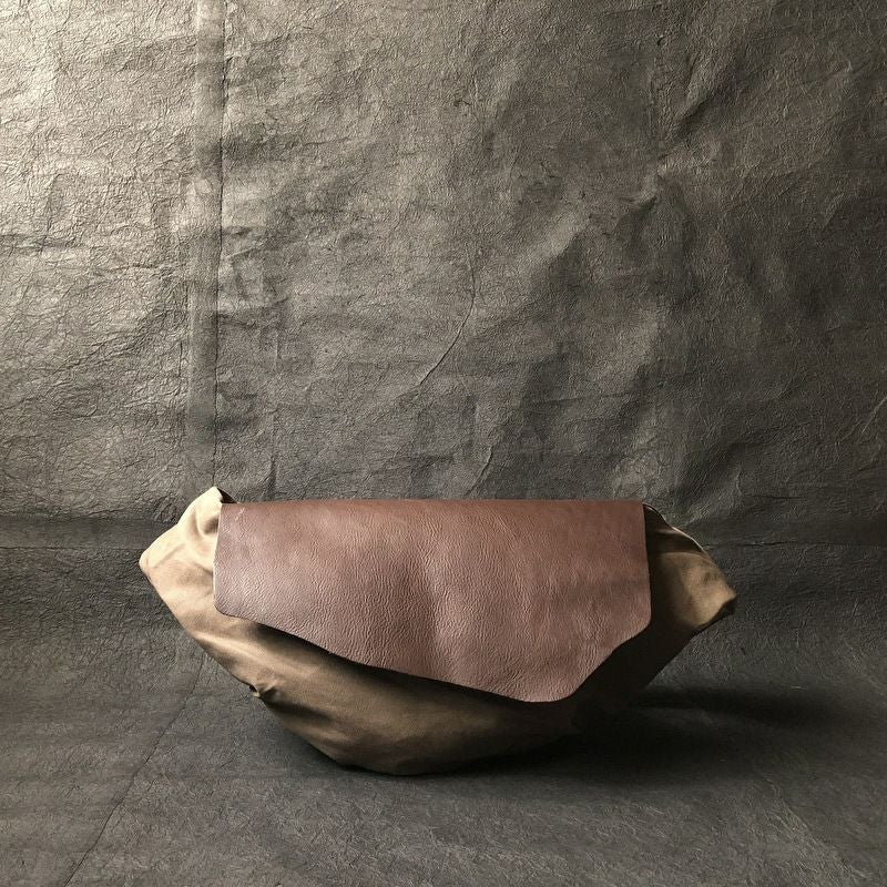 贅沢に使用した革蓋が特徴のボディバッグ。 斜めに背負うと体にぴったりとフィットします。 ショルダー部分は長さの調節が可能です。 サイズ:W600×H250×D120