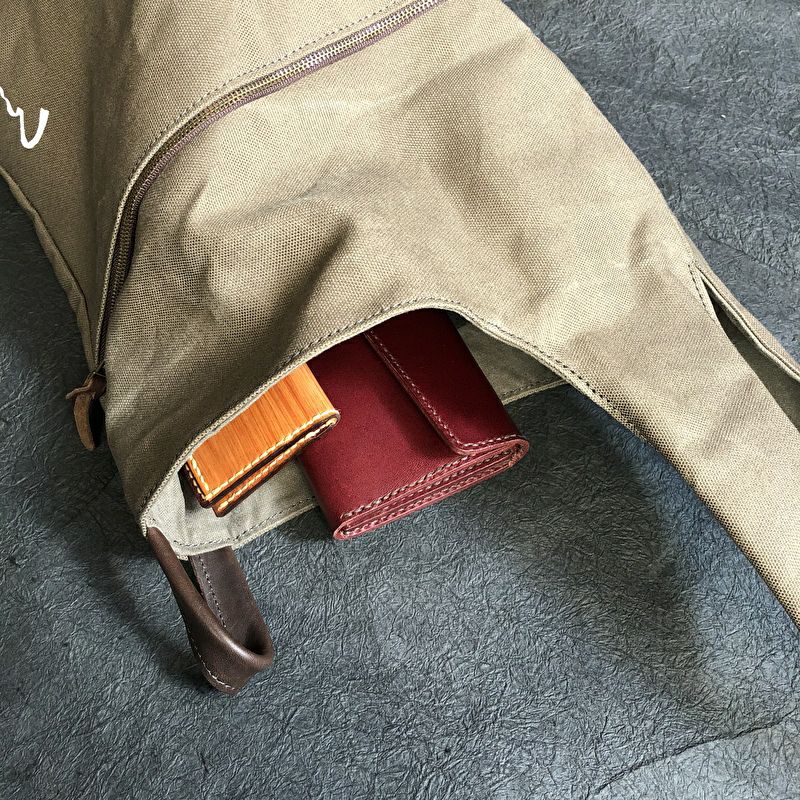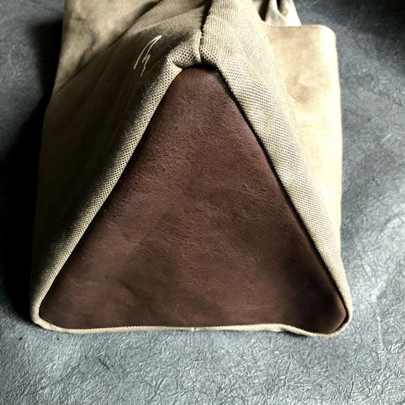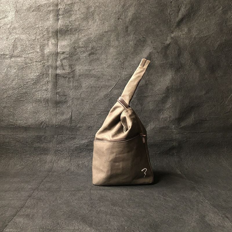 二面の本体と、三角の底を持つ不思議な鞄。 斜めポケットを取り付け幾何学な形状に仕上げました。 普段着だけでなく、着物や浴衣にもぴったり合うミニポーチです。 サイズ:W200×H290×D20