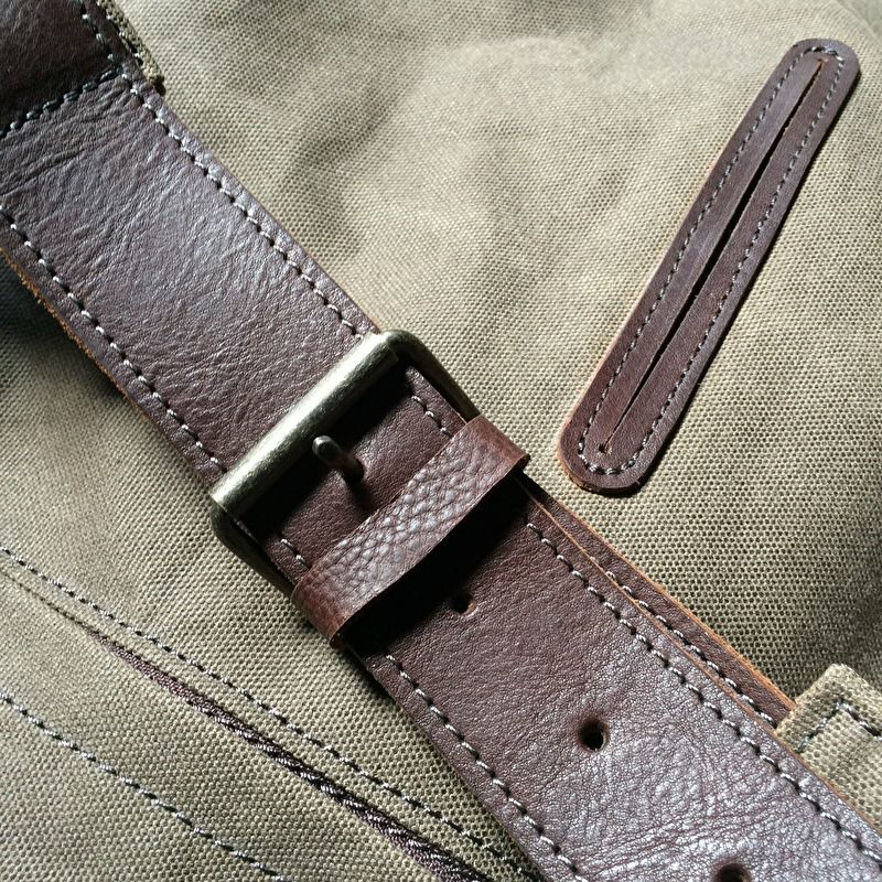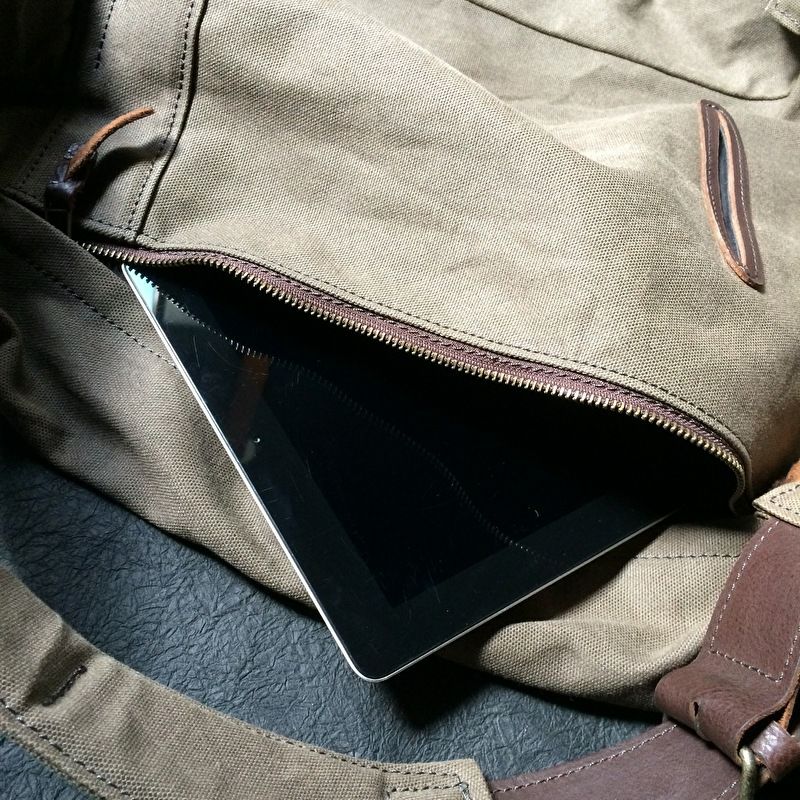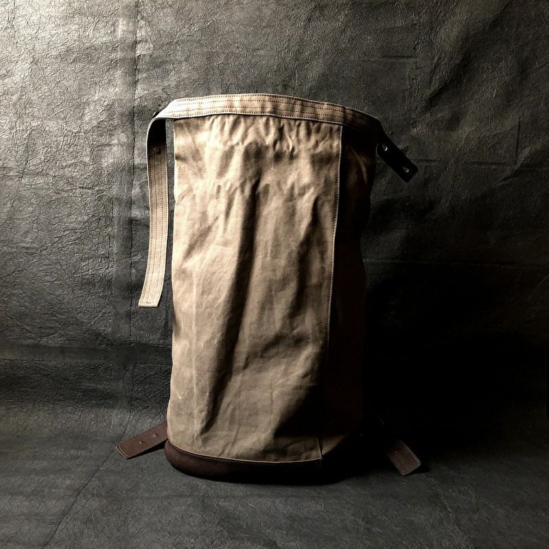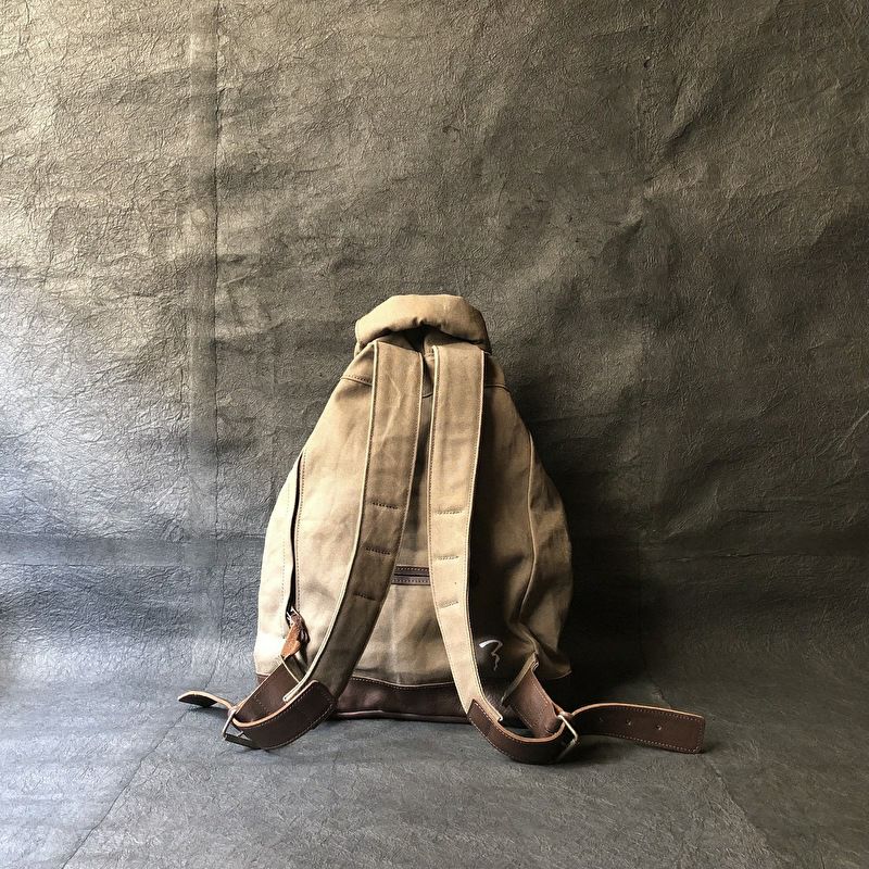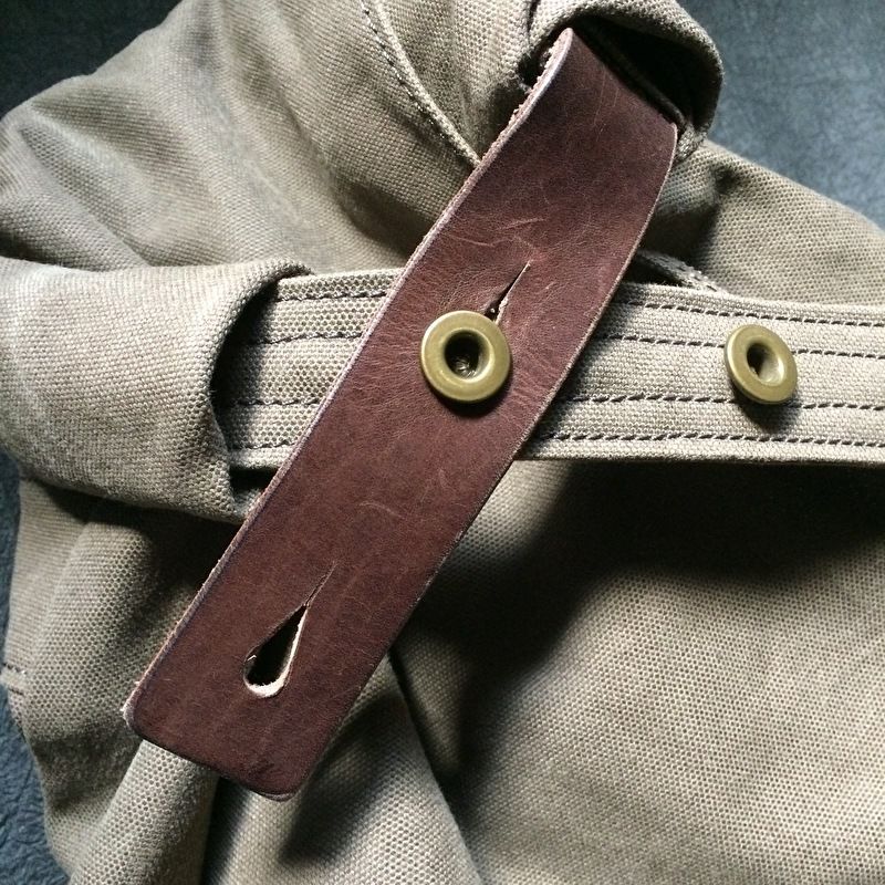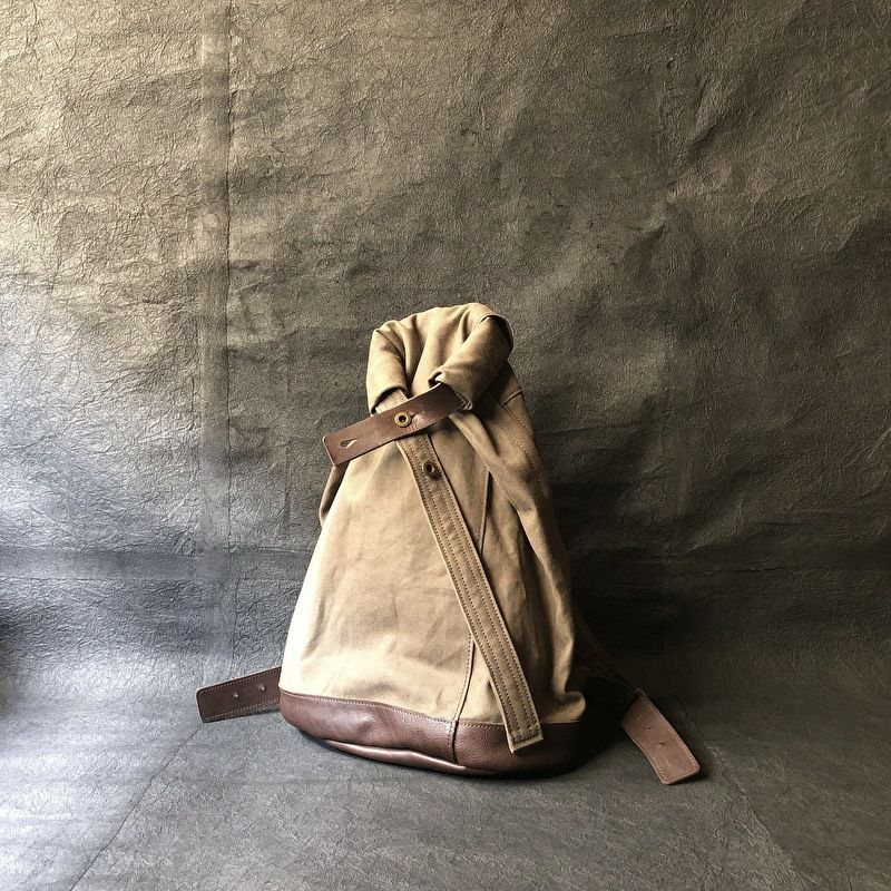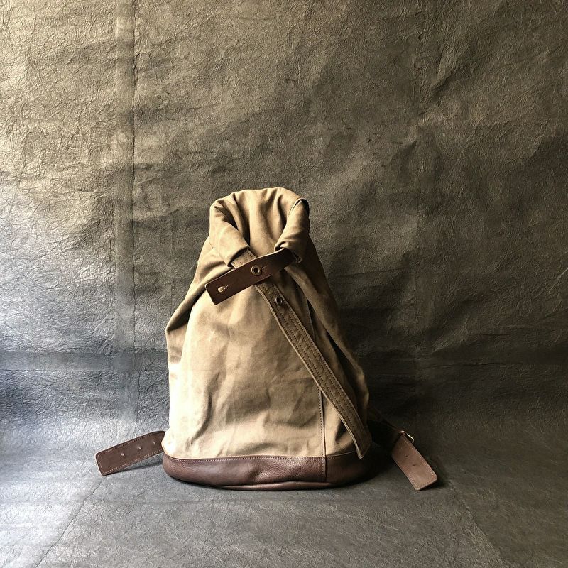 個性派の蓋巻きリュックです。 口のボタンをはずさずとも背中のファスナー(A4サイズもOK) で出し入れできるので使い勝手も抜群です。 背中のポケットには携帯も収納可能です。