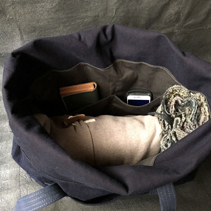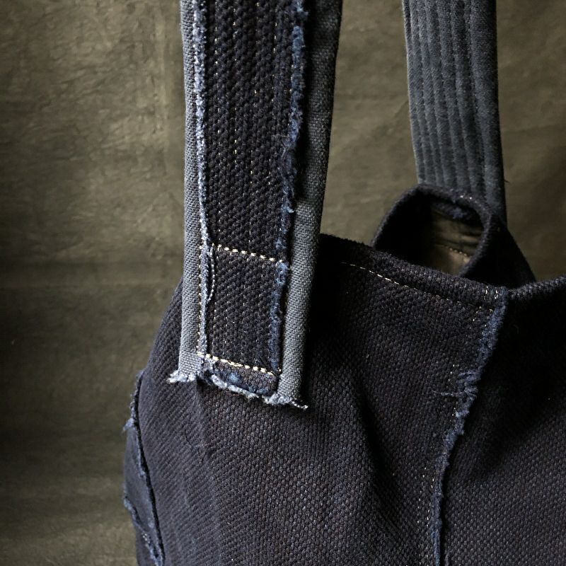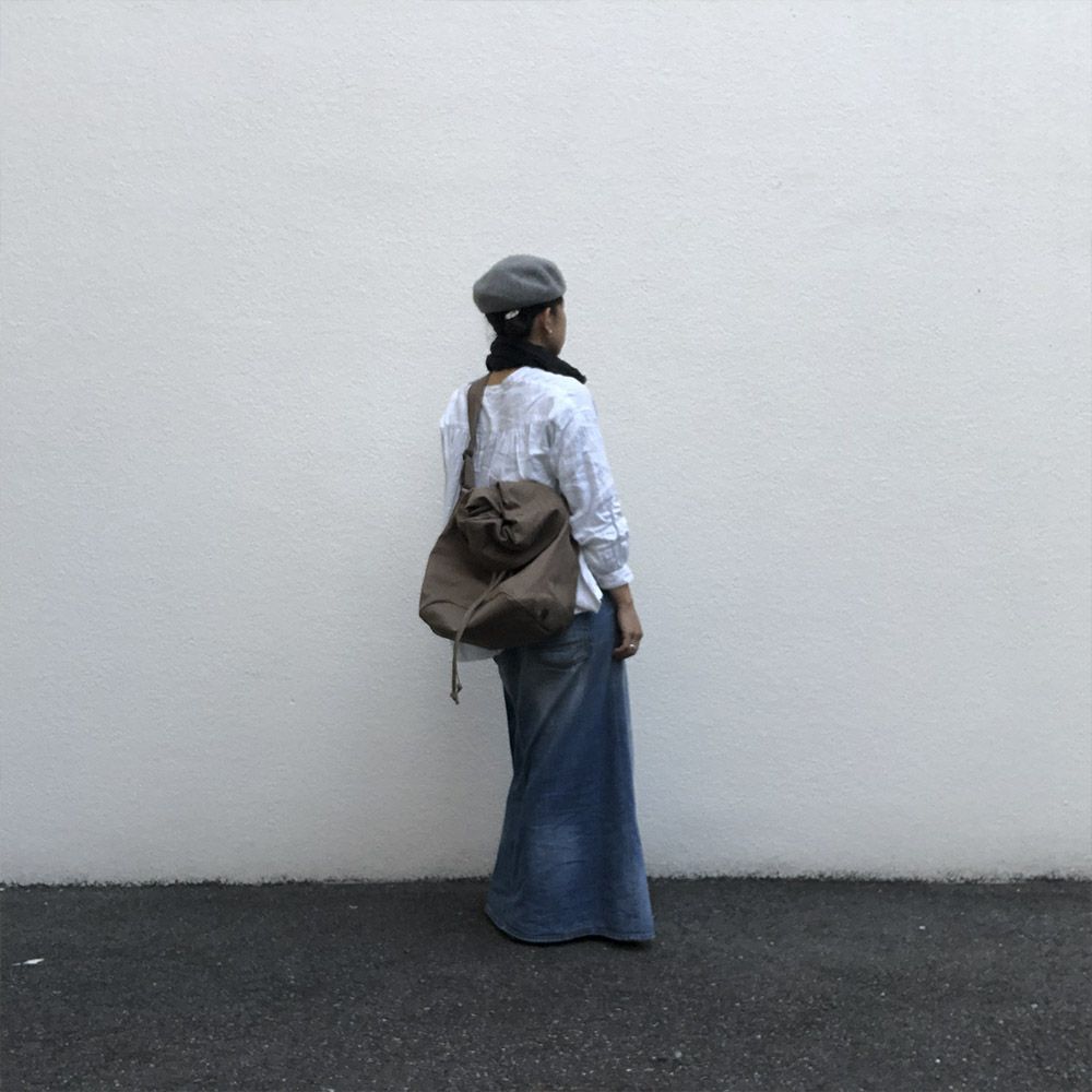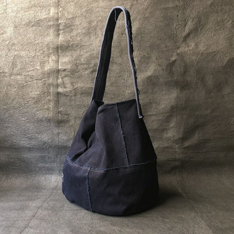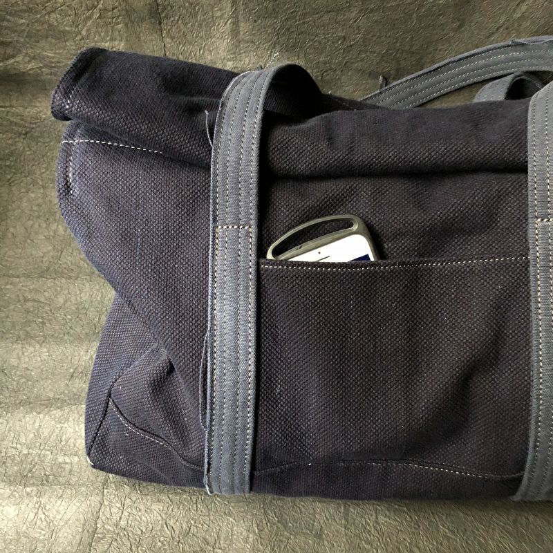 刺子織の凹凸が使うほどに味わいを増す蓋巻バッグです