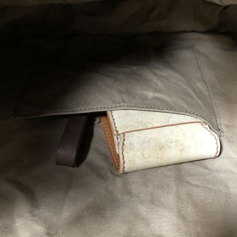 革を底に使用し、経年変化を楽しんで頂けるショルダーバック。収納力も間違いなしです。