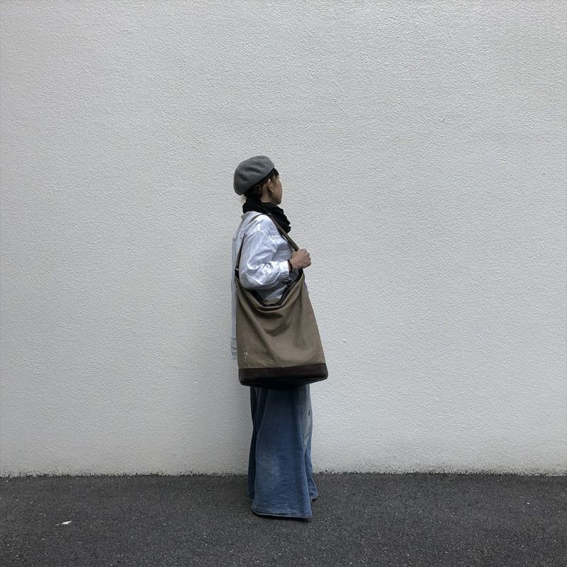 ショルダー部分の調節が可能な大容量バッグ。肩掛け、斜め掛けとその日の気分でお使い頂けます。革を底に使用し、経年変化を楽しんで頂けるだけでなく、強度を上げ長くご使用頂ける仕様となっています。内側には仕切りにもなるポケット付きです。 サイズ:W40×H700×D240