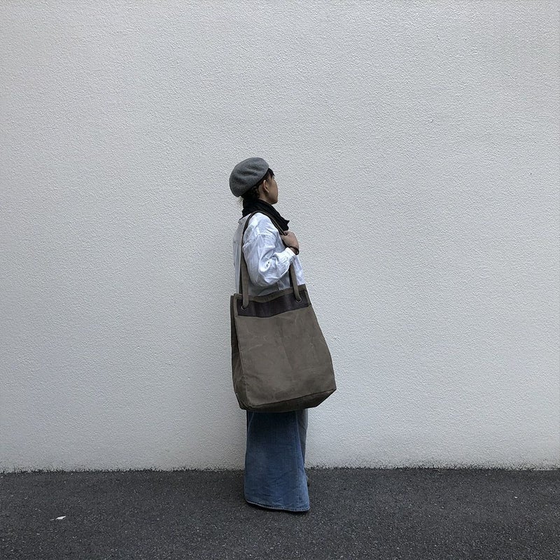 大容量のトートバッグ。その迫力が道行く人の目を引きつけます。内側に小物を入れるポケットを装備し、デザイン性、使い勝手共に考慮されたバッグです。 サイズH500×W400×D230