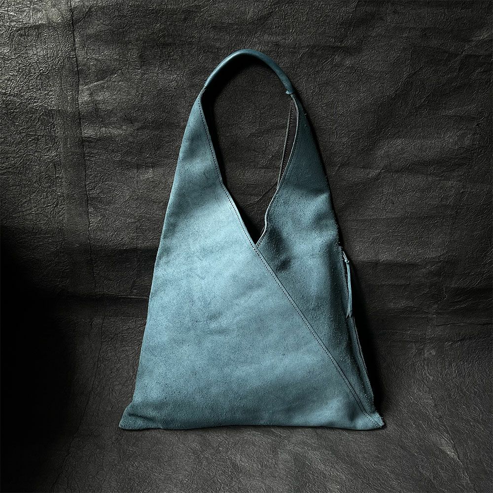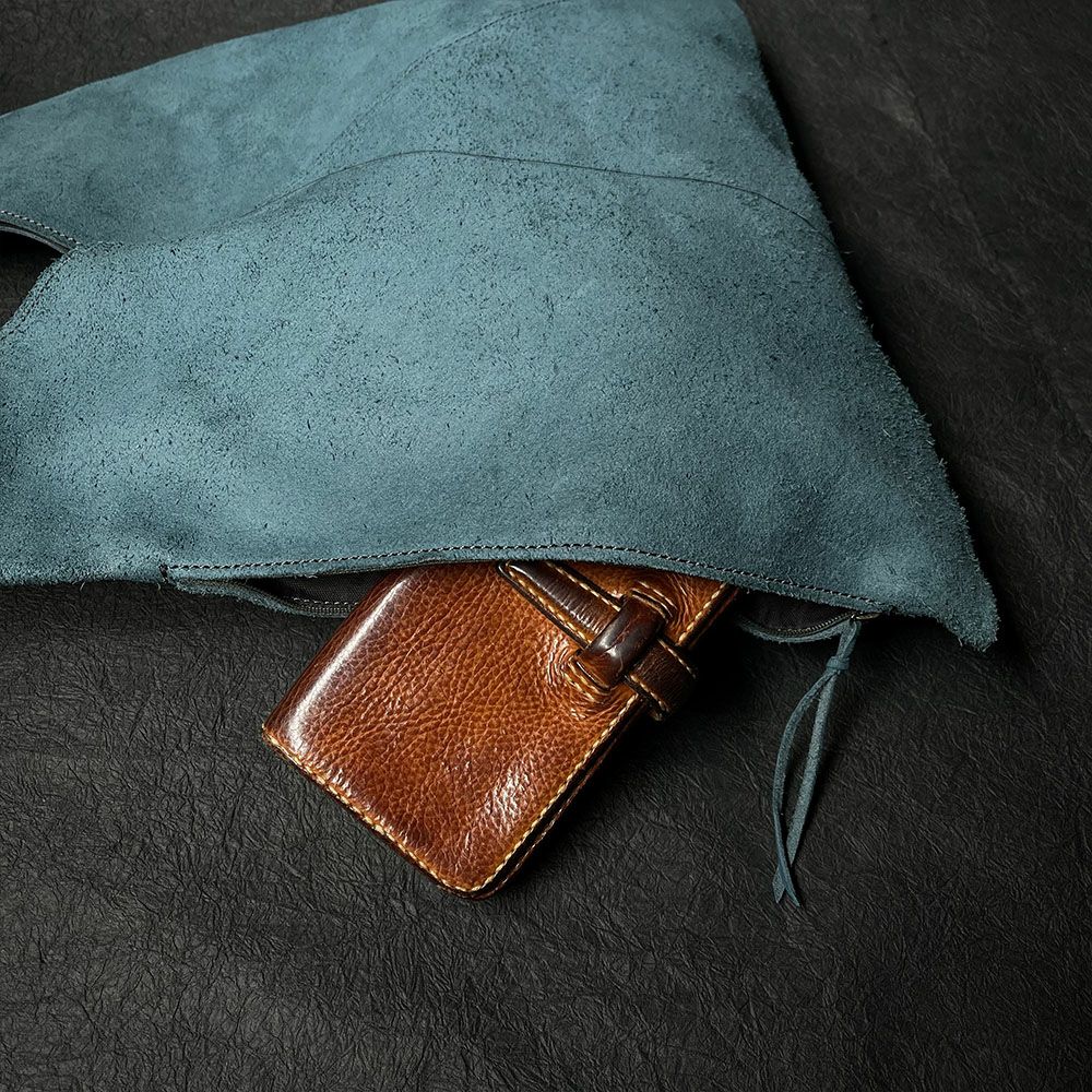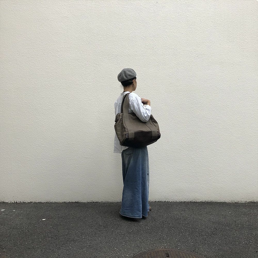 刺子織の凹凸が使うほどに味わいを増す蓋巻バッグです