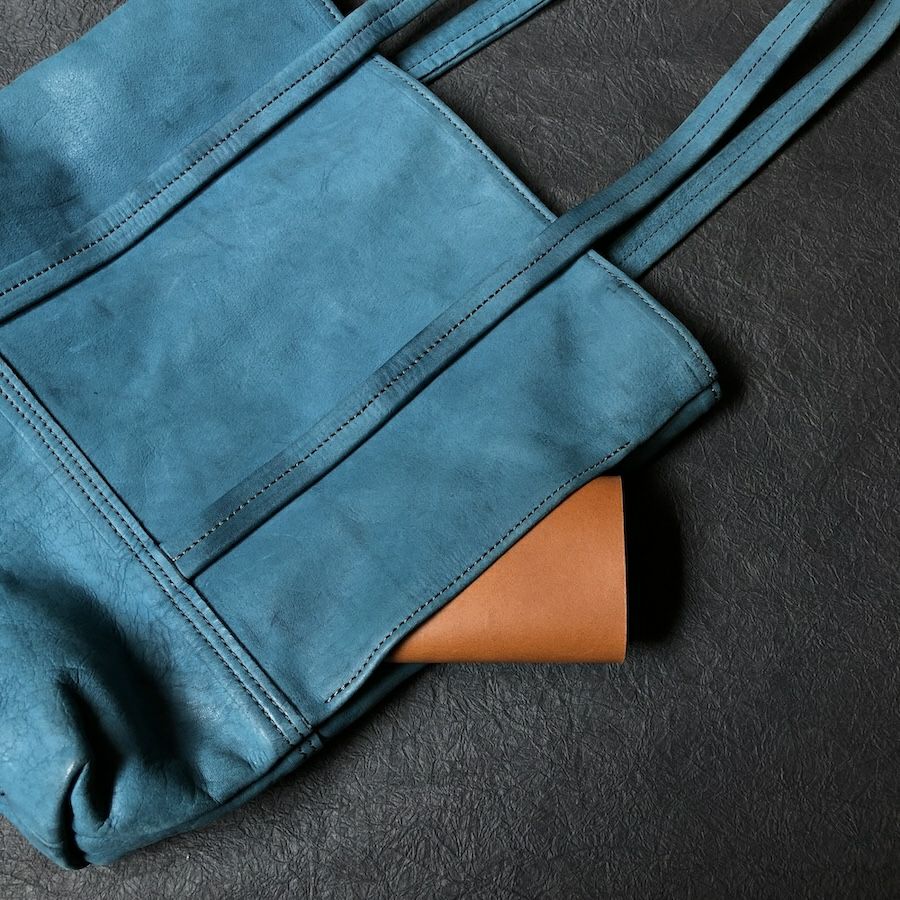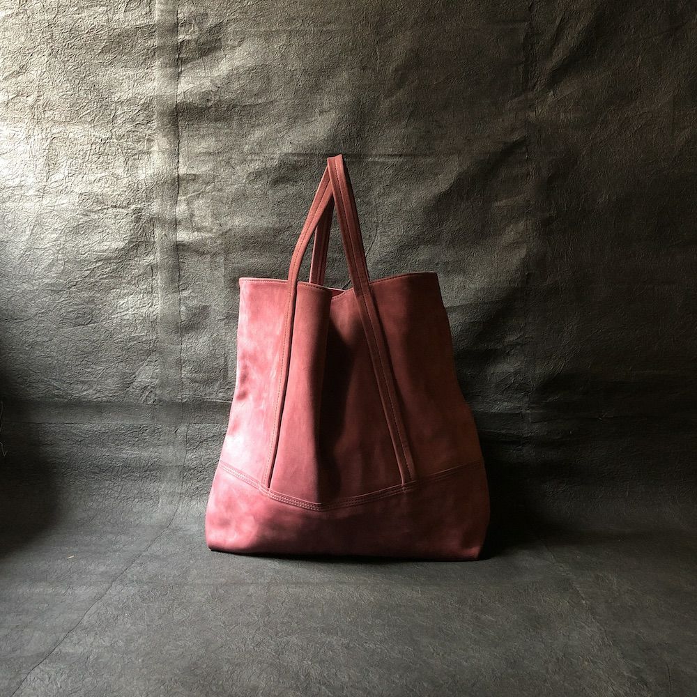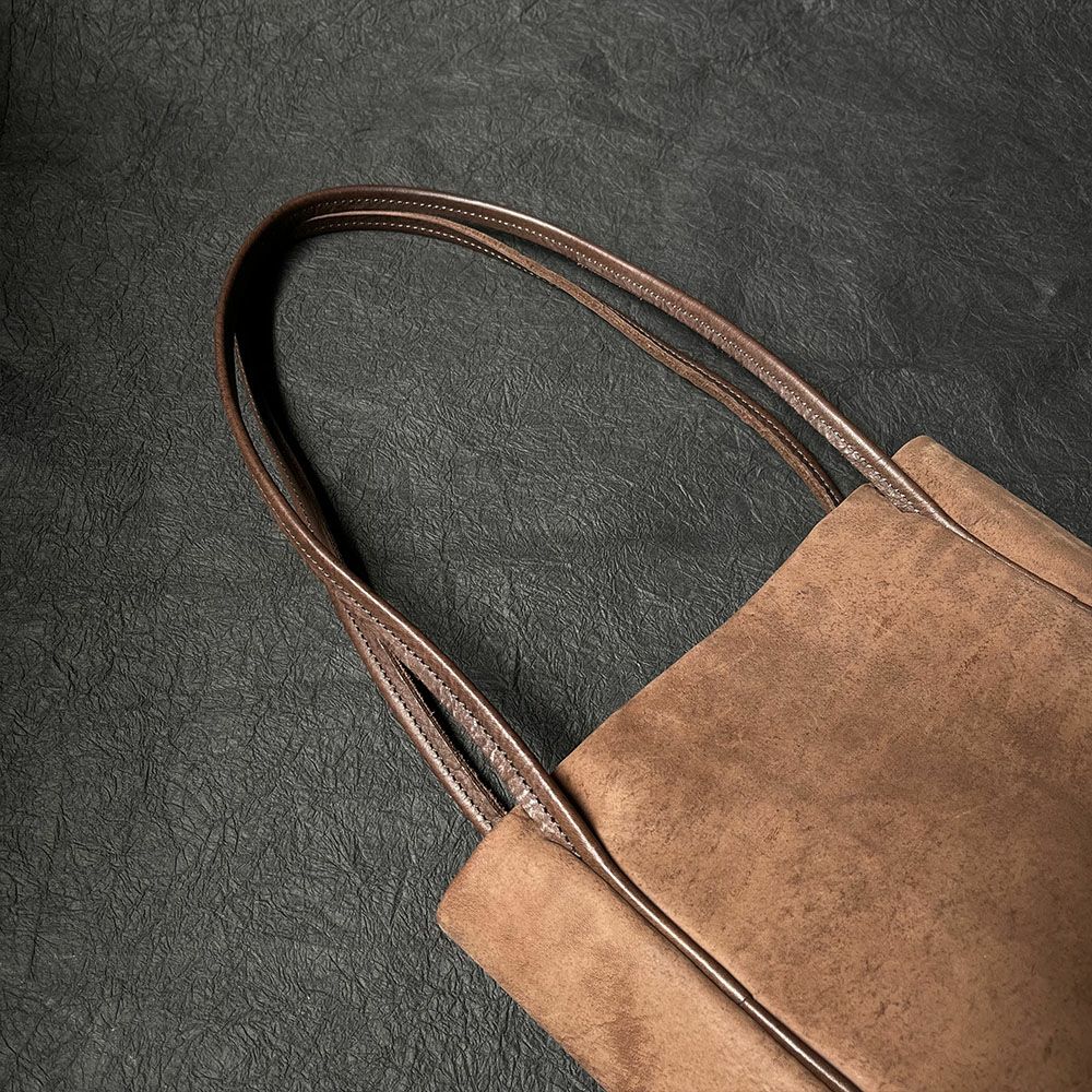 手染めの柿渋トートです。柿渋染ならではの抑揚が美しいバッグです。