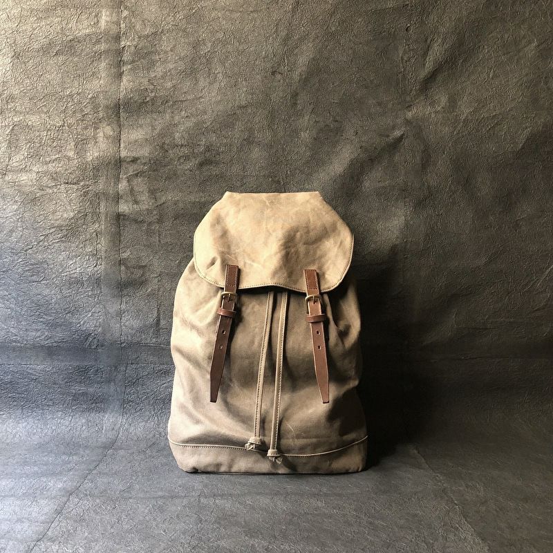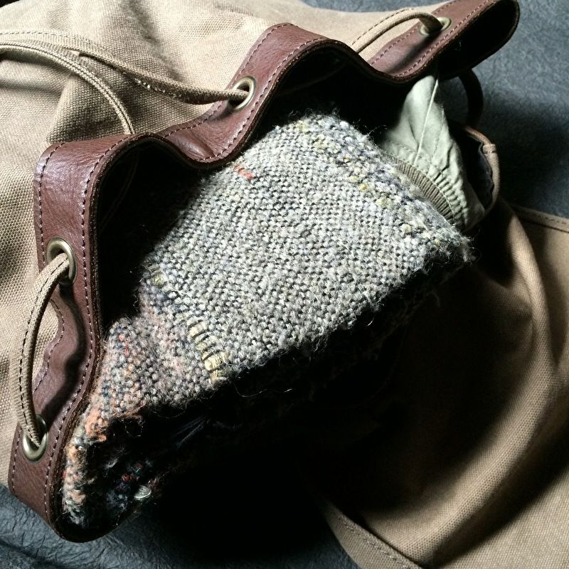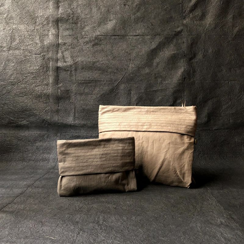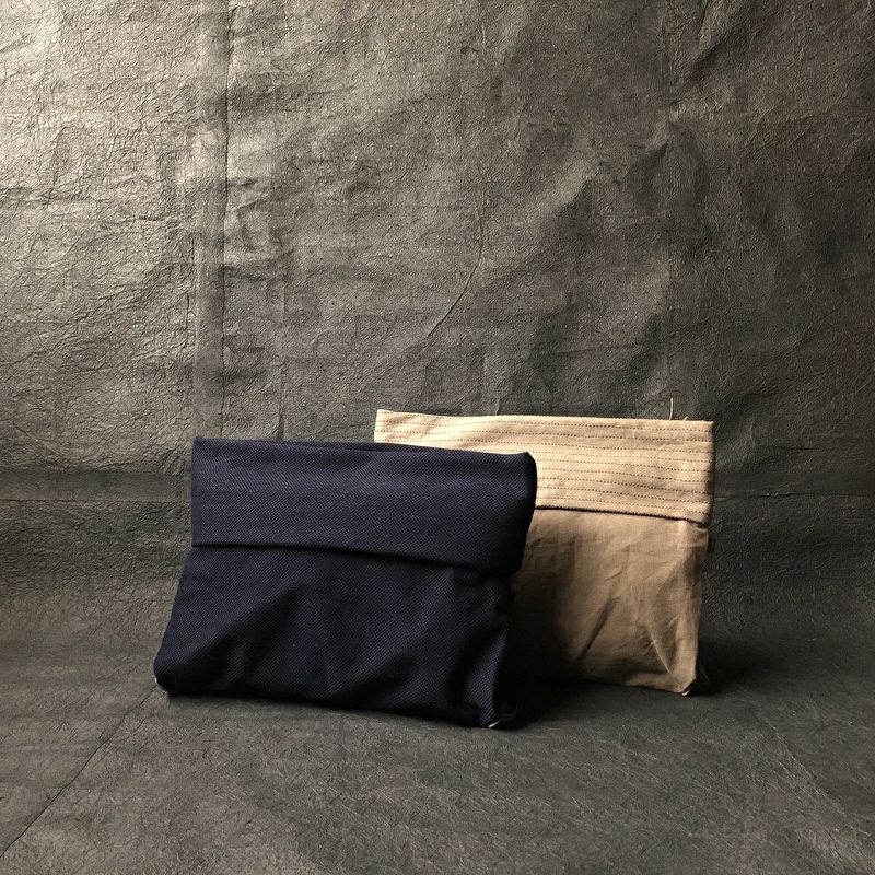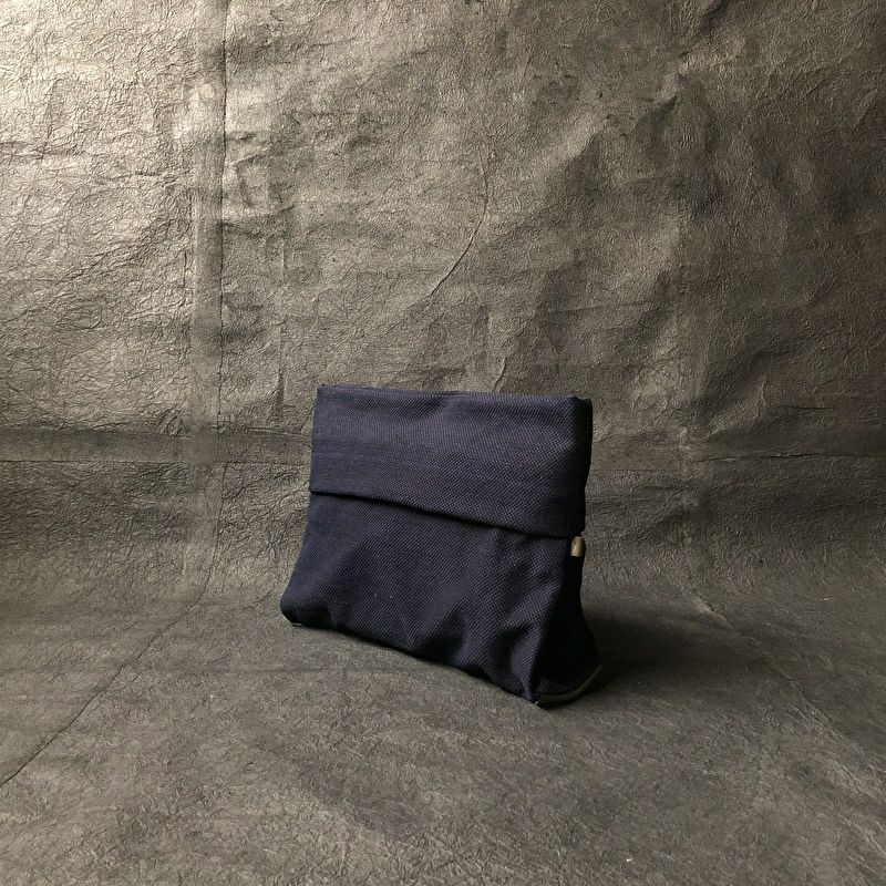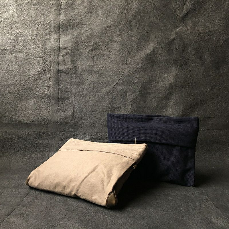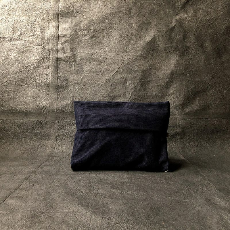 刺子織の凹凸が使うほどに味わいを増す蓋巻バッグです