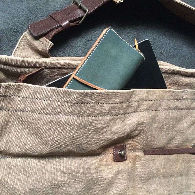 革を底に使用し、経年変化を楽しんで頂けるショルダーバック。収納力も間違いなしです。