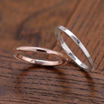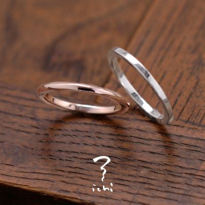 どんなシーンでも主張し過ぎる事無く二人に寄り添う甲丸と平角の細身のリングです。