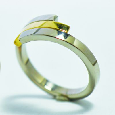 (左)素材を最大限に生かし、シンプルな見た目に個性光るデザンです。段を成して形状に動きを出した美しいフォルムに光り輝く素材が引き立ちます。
