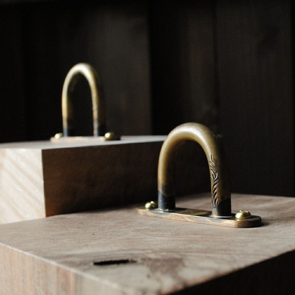 ハナノキの重厚感あるカッティングボードです。ハンドルは真鍮製です。 400 x 110 x 110 mm