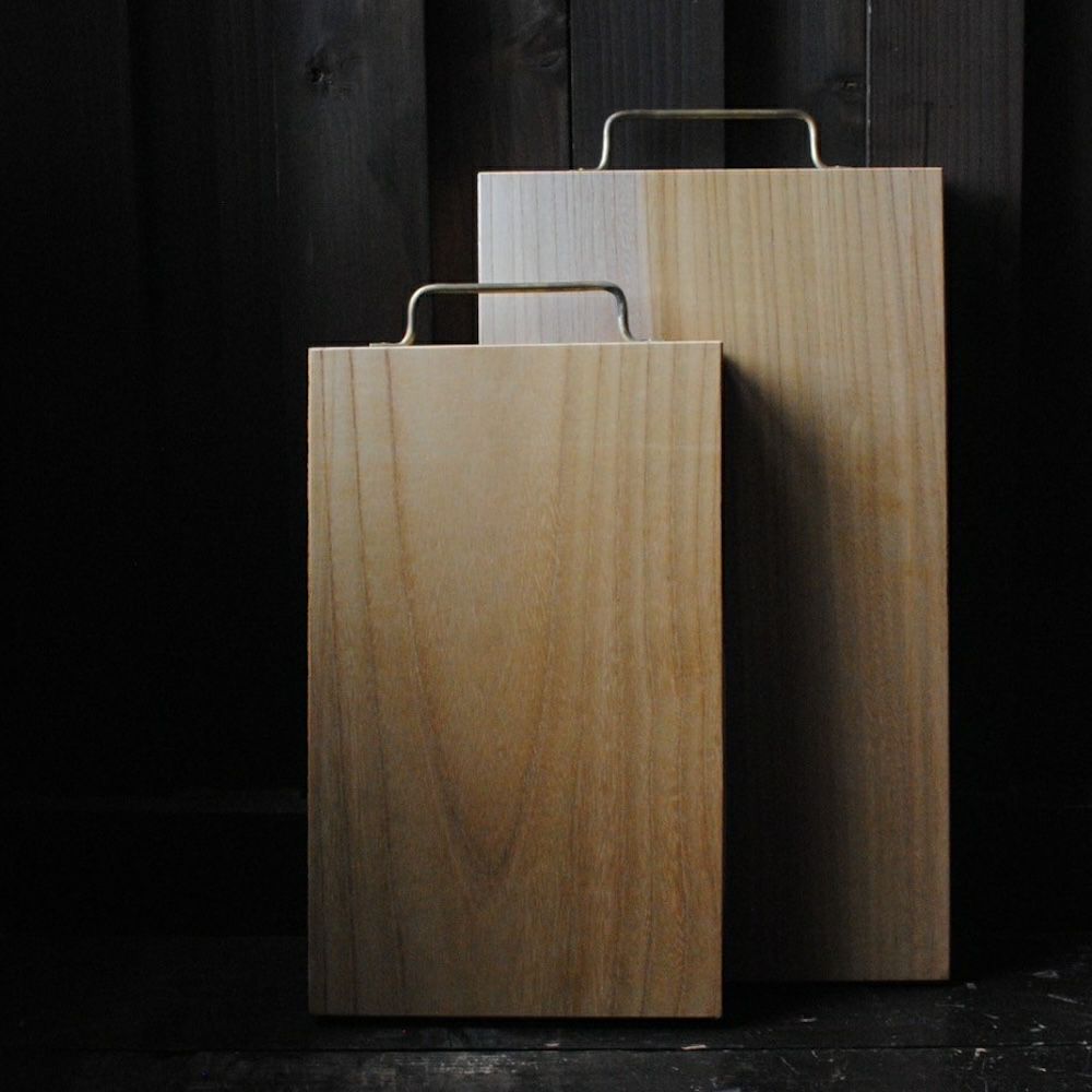 欅の重厚感あるカッティングボードです。ハンドルは真鍮製です。 320 x 210 x 30 mm