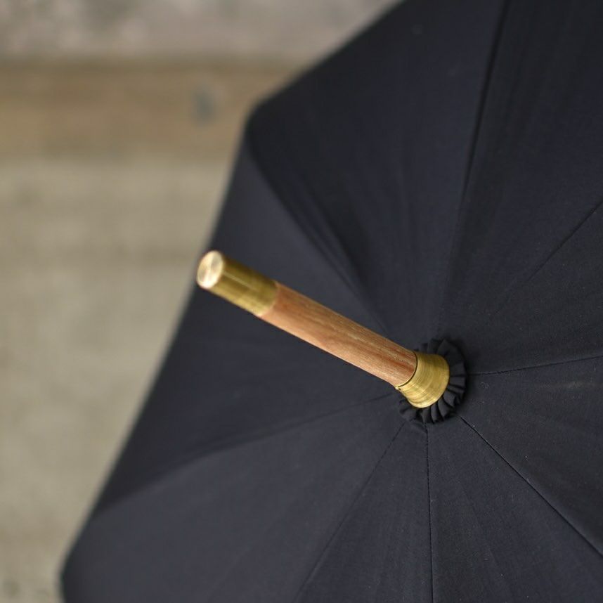 露先、石突、ストラップを真鍮で手造りしました。 ハンドルは木製で無垢材の削り出しです。 60cm(親骨)の紳士用長傘です。
