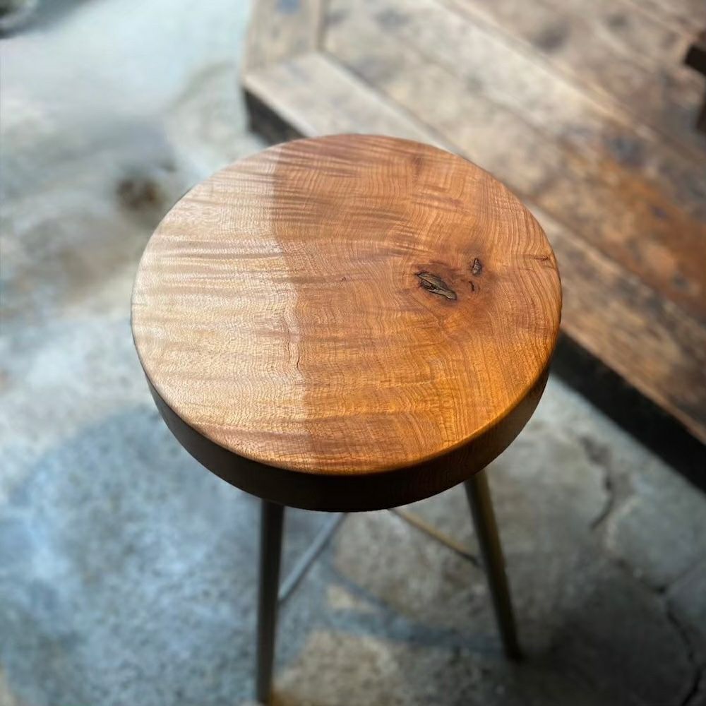 楓無垢板の贅沢なスツールです H450 x φ280mm