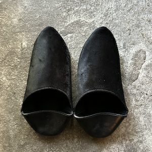 希少なヘアカーフレザーを使用したゴージャスなルームシューズです。