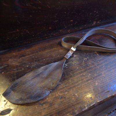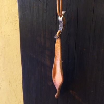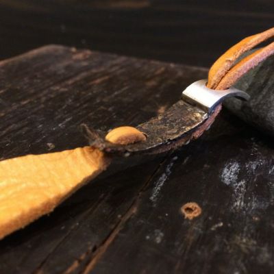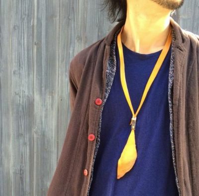 マットに仕上げた銀と腐食させた真鍮を組み合わせ、さらに斬新なカットで朽加工を施した革チョーカーと合わせました。存在感が目を引きつける首飾りに。 両者を引き立たせ合う豊かな経年変化を楽しんで頂けます。