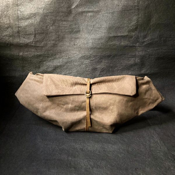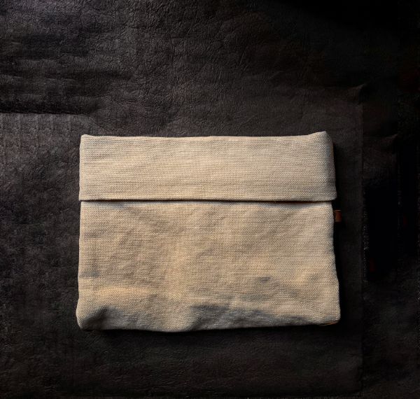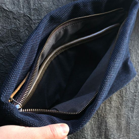 刺子織の凹凸が使うほどに味わいを増す蓋巻バッグです