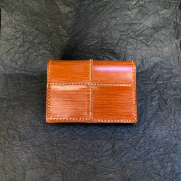 革のダイヤモンドと言われるコードバンに柿渋染めを施したichiオリジナルの素材を市松に組み立てた名刺入れです。