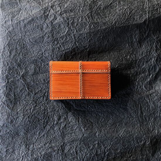 革のダイヤモンドと言われるコードバンに柿渋染めを施したichiオリジナルの素材を市松に組み立てた名刺入れです。