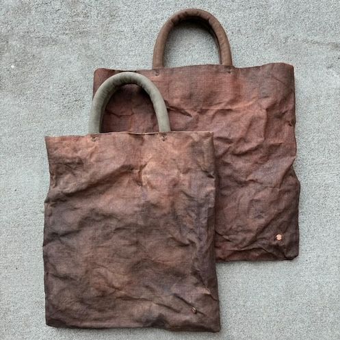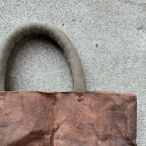 手染めの柿渋トートです。柿渋染ならではの抑揚が美しいバッグです。