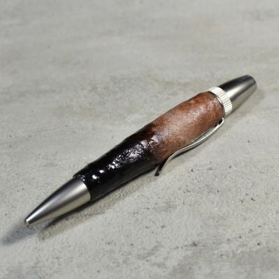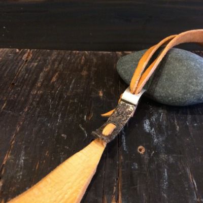 レギュラーサイズのジッポに4枚の革を重ね仕上げた煉革zippo。