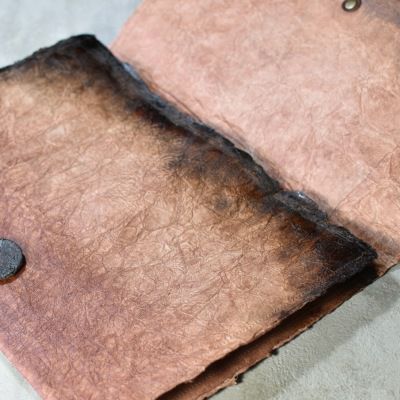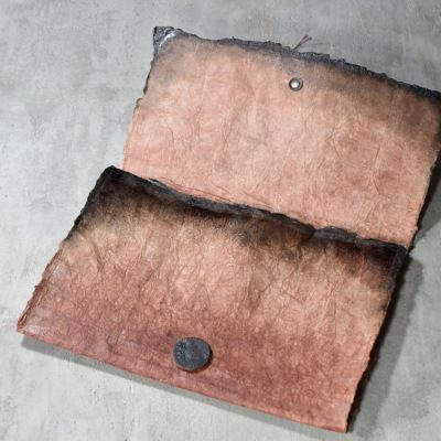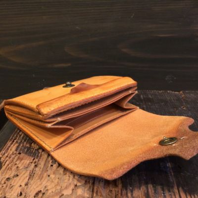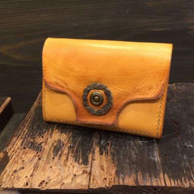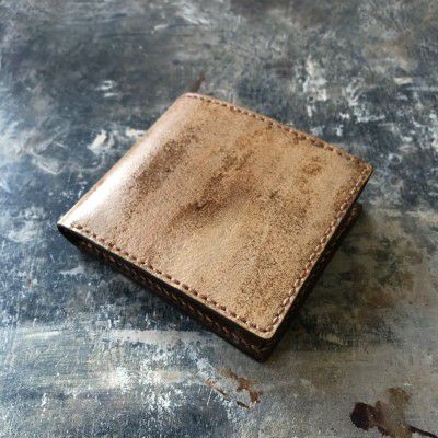 朽加工された革に腐食した真鍮金具を配した個性派ウォレット
