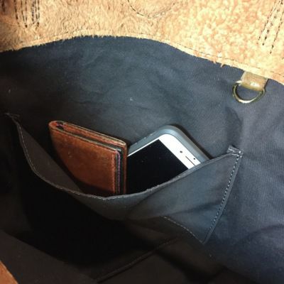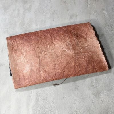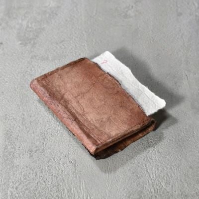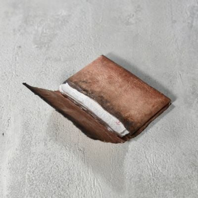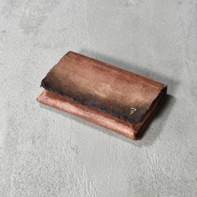 蝶番が外の煉革が内のろう引きを繋ぐ開閉式のカードケースです。