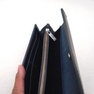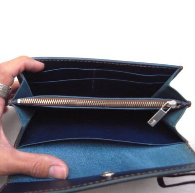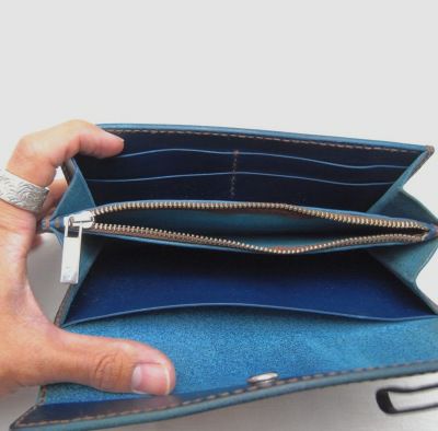サイズ:W190×H95×D20 ☆革の種類と革色をお選びください (写真:オイル青/溝:焼きスリ) ◎革・糸サンプルはこちら