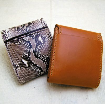 (右側)天然のパイソン模様が美しい金具のない三つ折り財布
