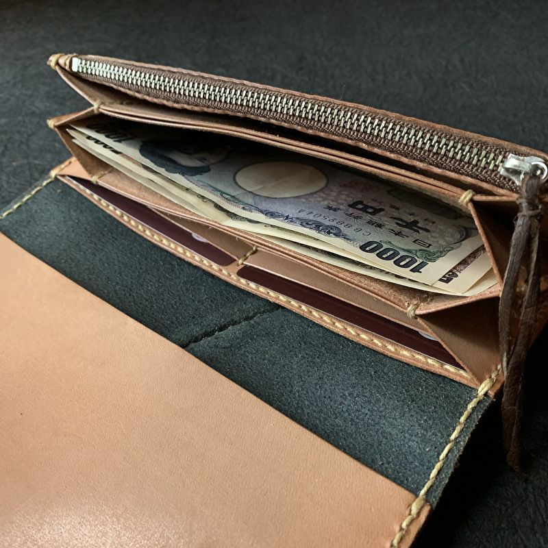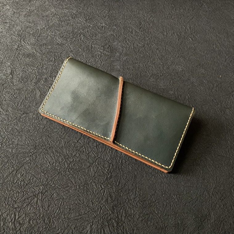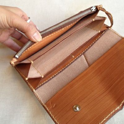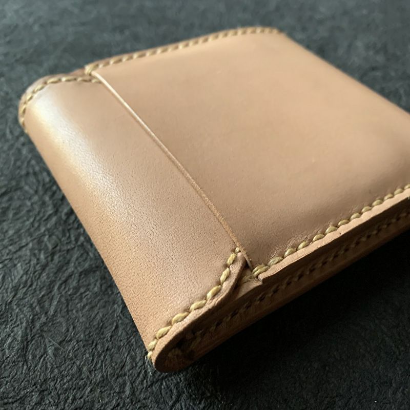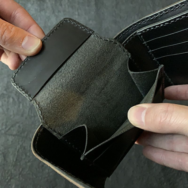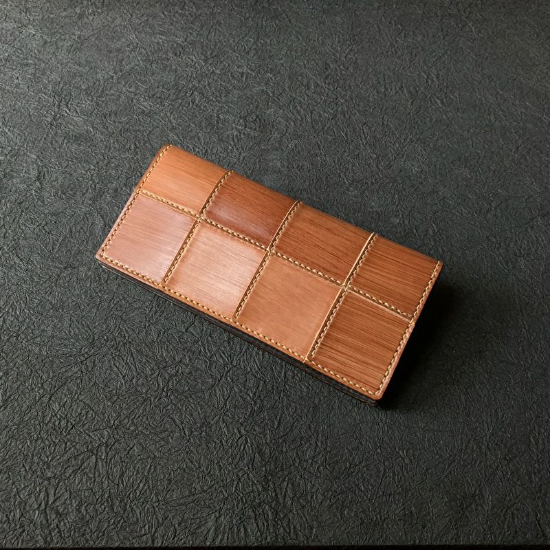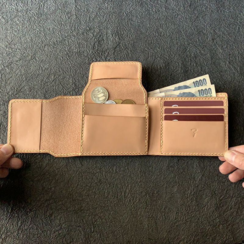 タンニン鞣しの牛革に漆塗りを施した三つ折りウォレット