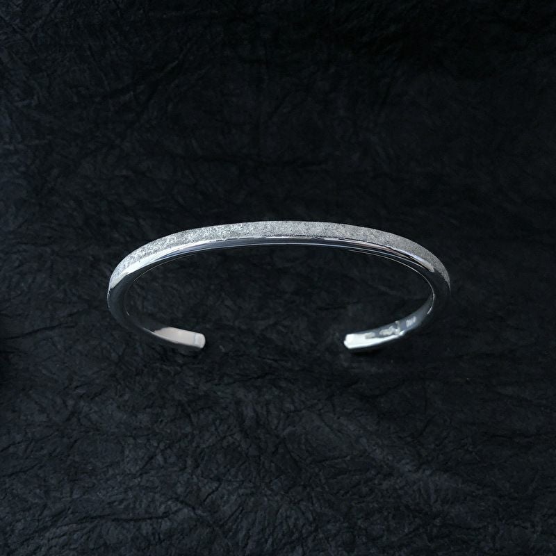 表面はざらざらの加工を施すことで、鏡面との表情の違いを造った白釉のバングルは、繊細ながら特徴的な仕上がりです。