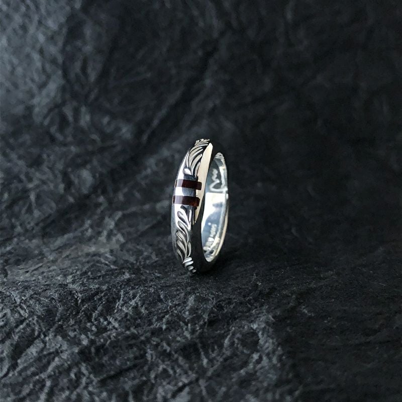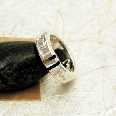 2本の鼈甲のラインと唐草が贅沢な印象の幅広リングです。