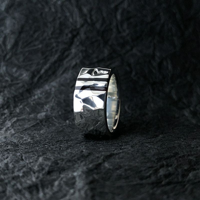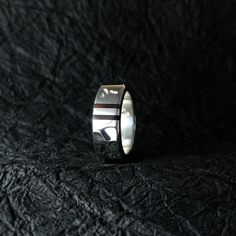 鎚目と、2本の鼈甲の奥深い輝きが美しいリングです。