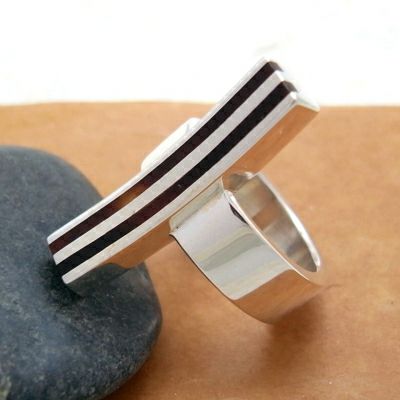 贅沢に使用された鼈甲と、鏡面との組み合わせがインパクトのあるリングです。