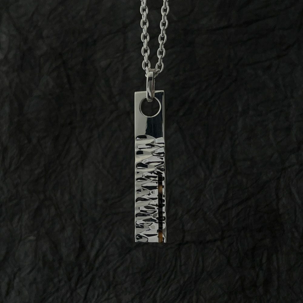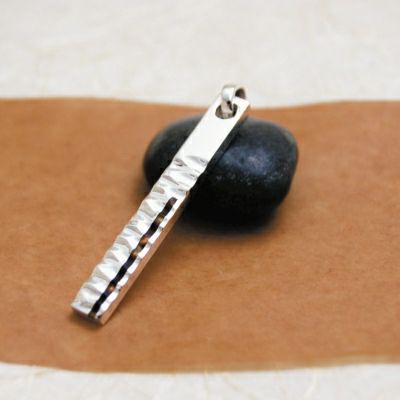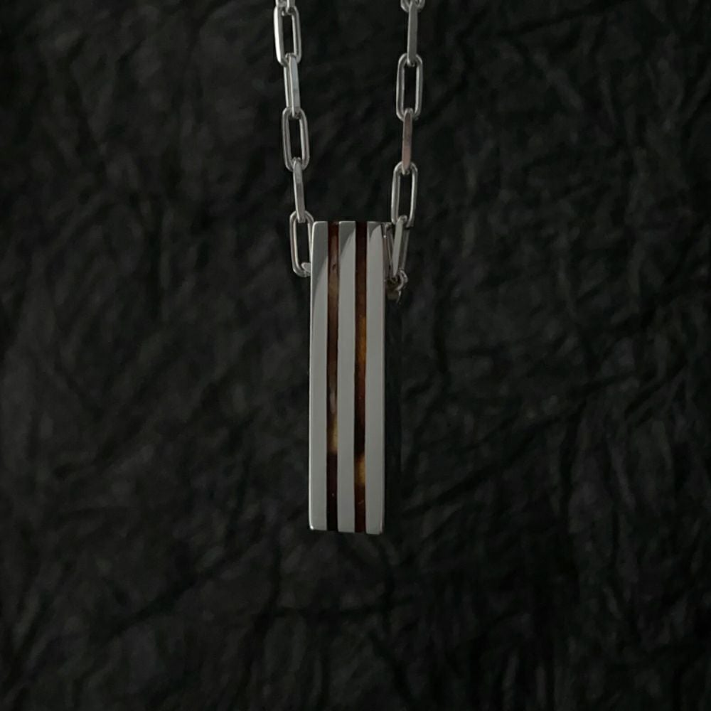 御座目を叩いたプレートに、細めの鼈甲を合わせたペンダントトップです。