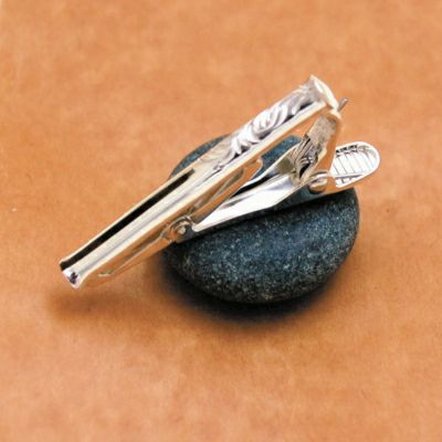 甲丸状のタイクリップの表面に、唐草と鼈甲を施した豪華な仕上がりとなっています。プレゼントにもオススメです。