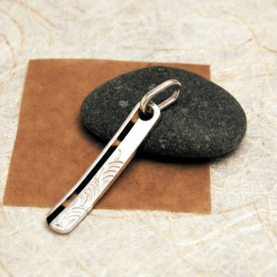 長細い楕円形のプレートに、唐草と鼈甲のラインを施したペンダントトップです。やわらかみのあるシルエットと、鼈甲の持つ奥深い輝きが、あたたかい印象のデザインになっています。細身のタイプは繊細な印象があり、女性にもオススメです。