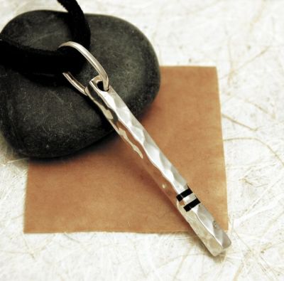 鎚目を叩いたバーに施された、細めの鼈甲がアクセントとなるペンダントトップです。細長いシルエットが繊細な印象を持ち、一見シンプルながらも、鼈甲部分は鎚目に合わせて凹凸がついており、職人のこだわりが光る一品に仕上がっております。
