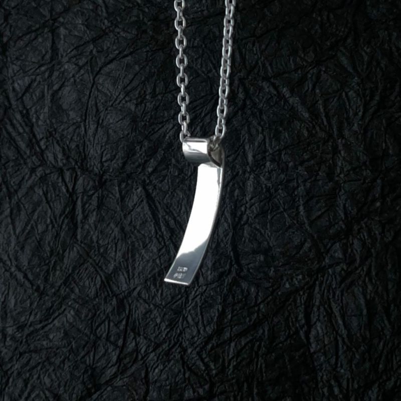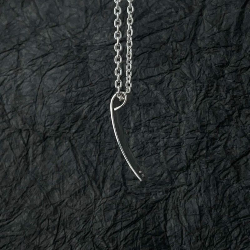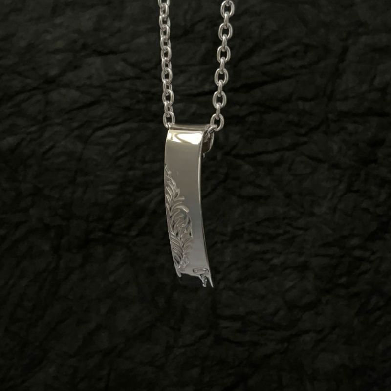 仕上げはマットと鏡面、どちらもお勧め。ゆったりと膨らんだ板状の表面へ、弧を描く唐草模様を施しました。カンが無い為、簡素に装着できさりげないおしゃれに最適です。