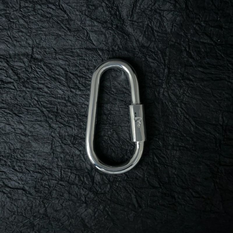 丸い線材のなめらかな曲線と、側面に彫り込まれた唐草が美しく、こだわりの光るネジ式キーリングです。