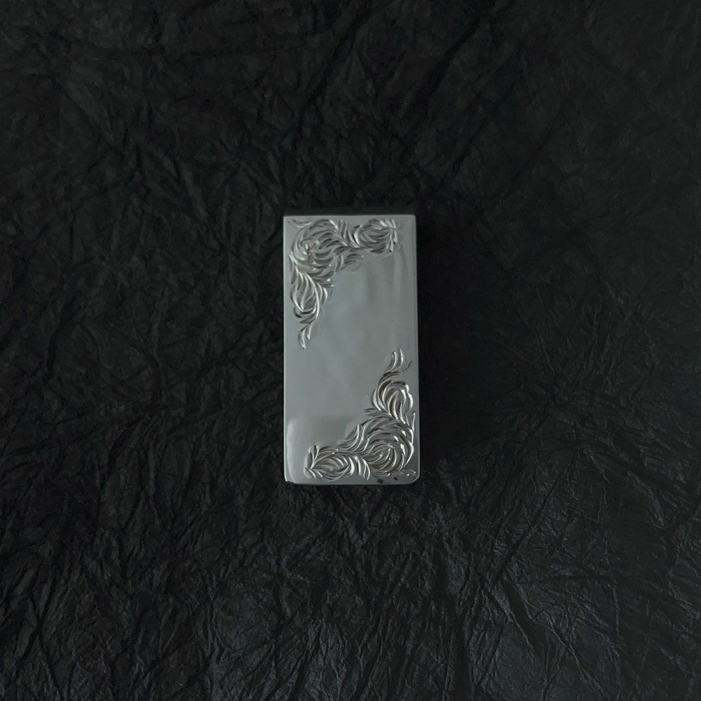 右下に唐草がざりげなく施された、シンプルながらも美しい、細身のマネークリップです。