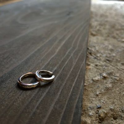丸い線材に唐草が彫り込まれたシンプルなピアスです。