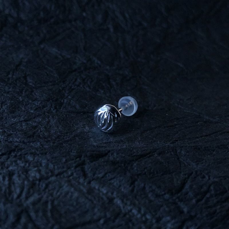 丸い形の中心には唐草が施されており、まるで小さなバラのように美しいデザインのピアスです。