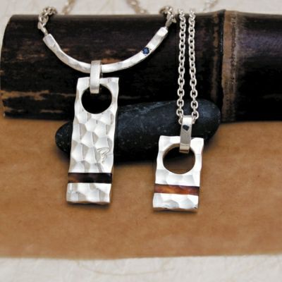 大きく空いた穴が印象的なペンダントトップです。下部に施されたライン状の鼈甲には、全体に打ち込まれた鎚目に合わせて凹凸が付けられており、職人のこだわりが光る一品。小ぶりながらも存在感があり、首元のさりげないアクセントにぴったりなデザインです。