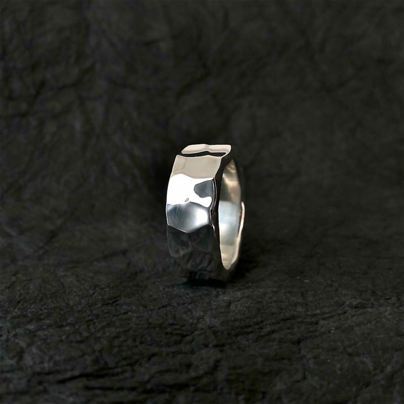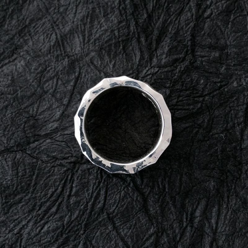 金槌で打たれた鎚目が美しく光るリング。経年変化でまた違う新たなが見られます。男女共に好まれるシンプルなデザイン。幅を変えてペアリングにもお勧めです。