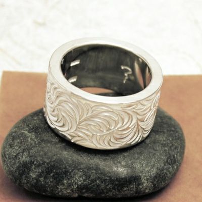 幅広リングの表面に手彫りの唐草。唐草好きにはたまらない、このボリューム感。