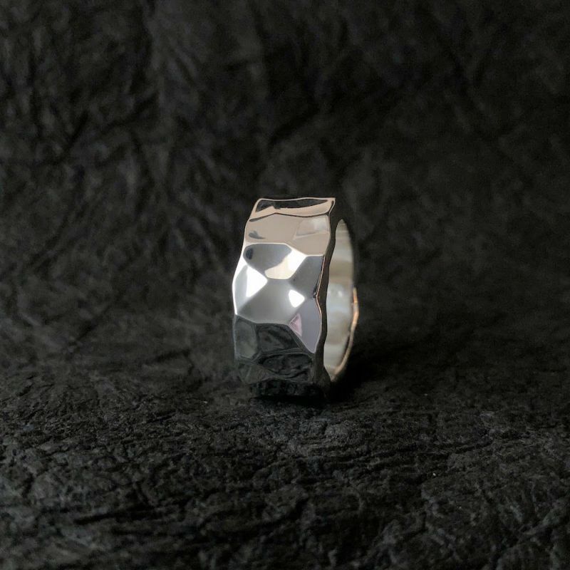 金槌で打たれた鎚目が美しく光るリング。経年変化でまた違う新たなが見られます。男女共に好まれるシンプルなデザイン。幅を変えてペアリングにもお勧めです。