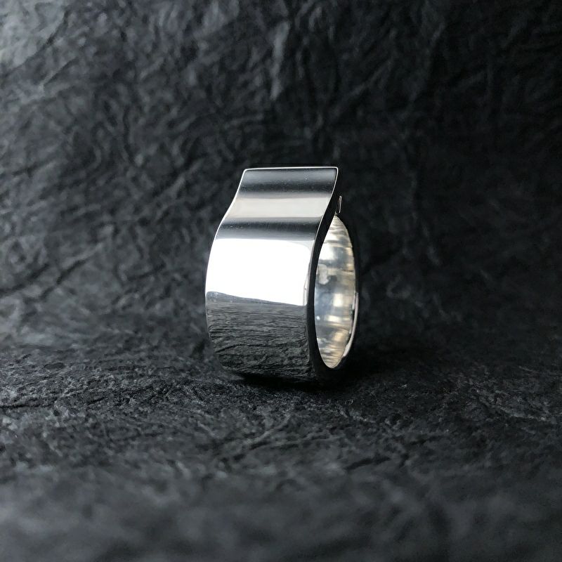 滑らかな曲線美が魅惑的なリング。幅広ボディなだけに職人技が光る一品。
