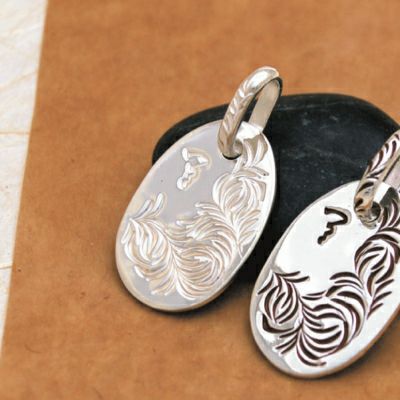 楕円の形に程良く唐草が彫り込まれたトップです。