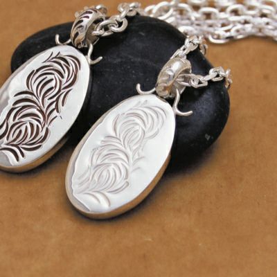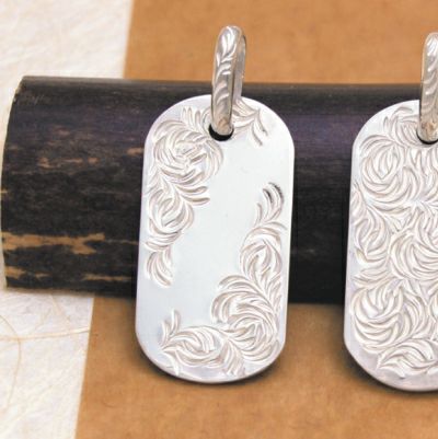 小振りな楕円に沿って唐草が彫り込まれたトップです。